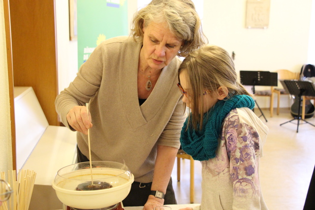 Dorothea Ehm bei der Zubereitung von Zuckerwatte – sie hatte den ganzen Nachmittag viel zu tun.