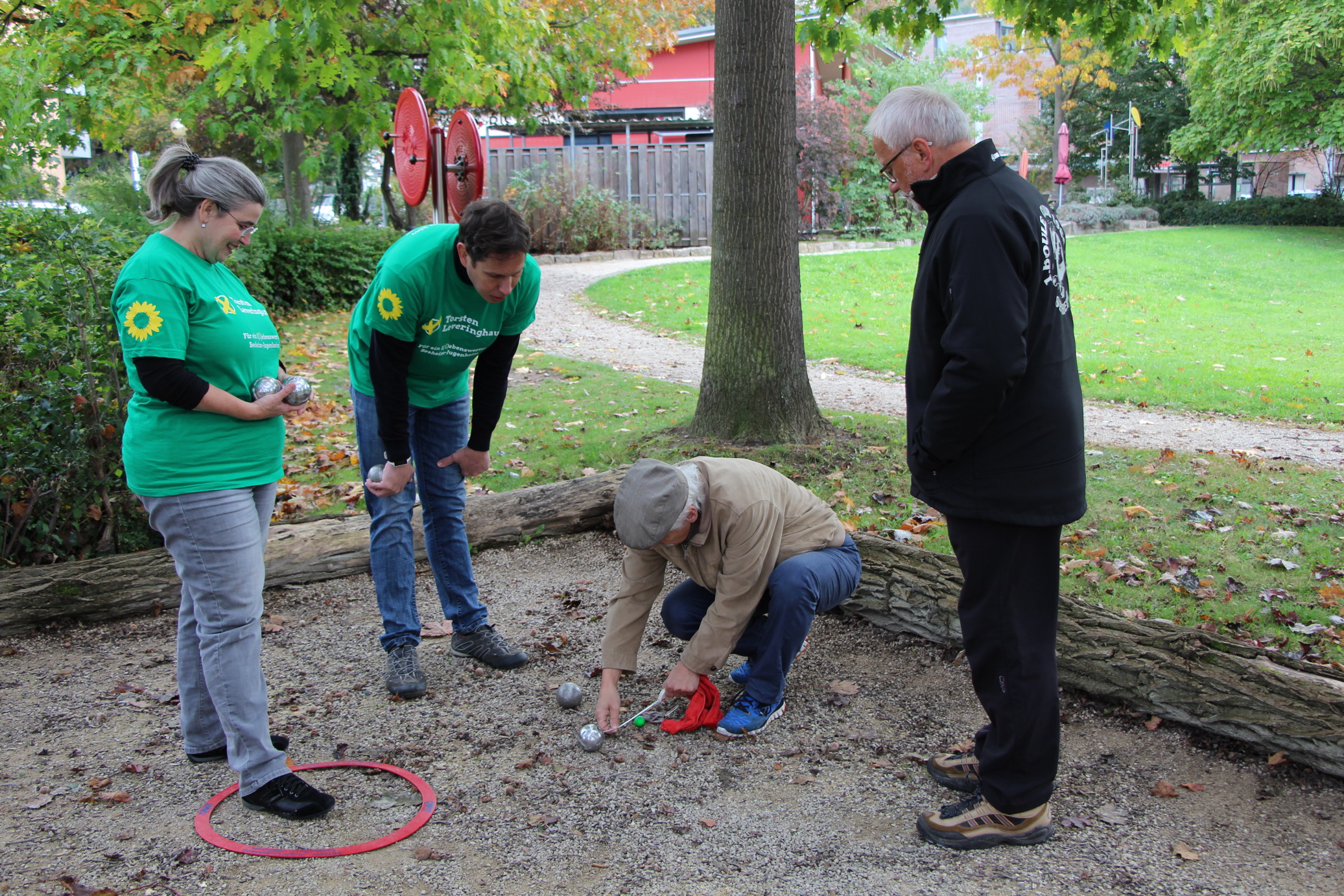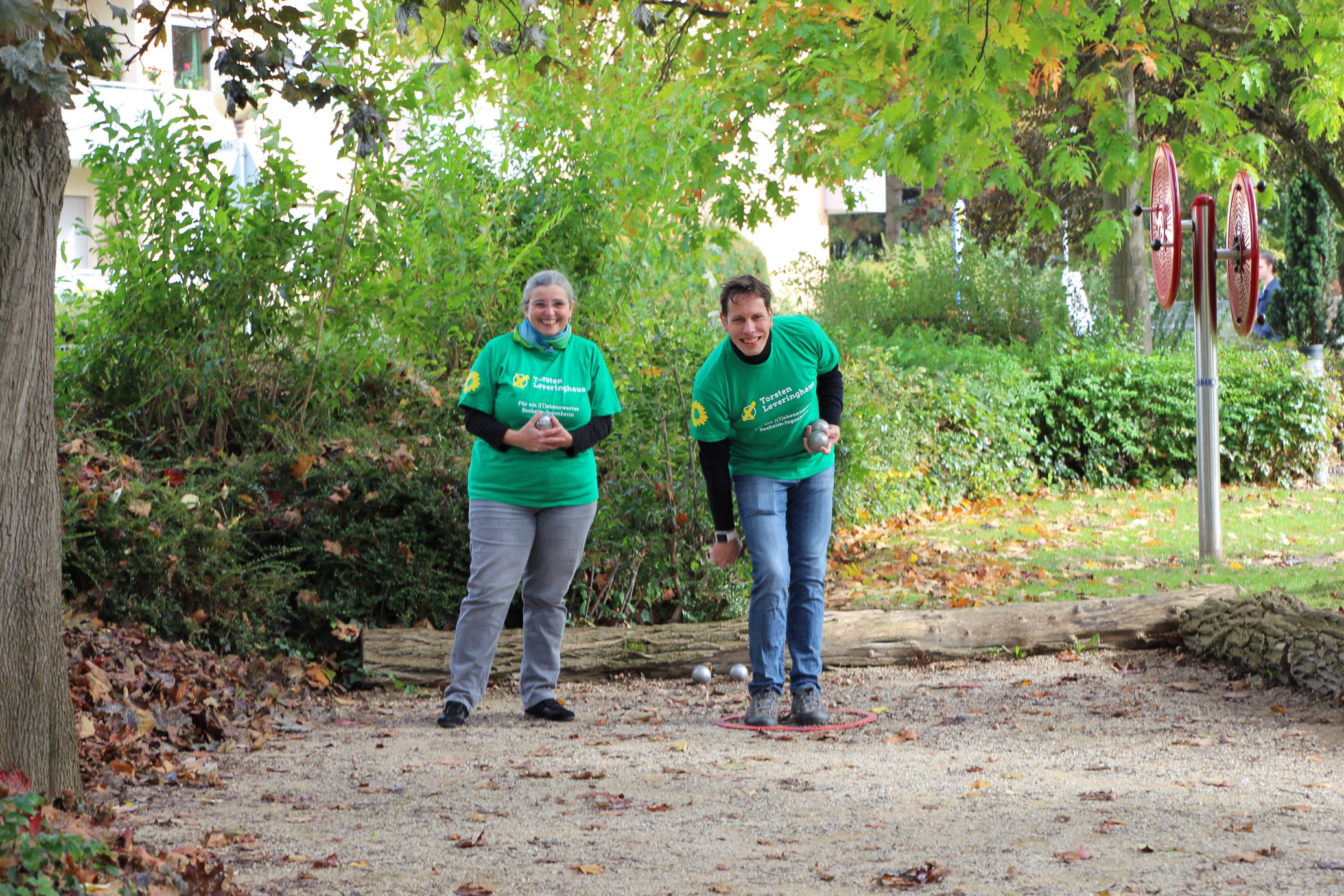 Unser Boule-Spiel auf dem Villenave d’Ornon Platz war ein voller Erfolg. Neben dem eigentlichen Spielen stoppten einige Bürger*innen und zeigten sich erstaunt, dass man auf dem Platz Boule spielen kann. Genau das wollten wir mit unserer Aktion erreichen.