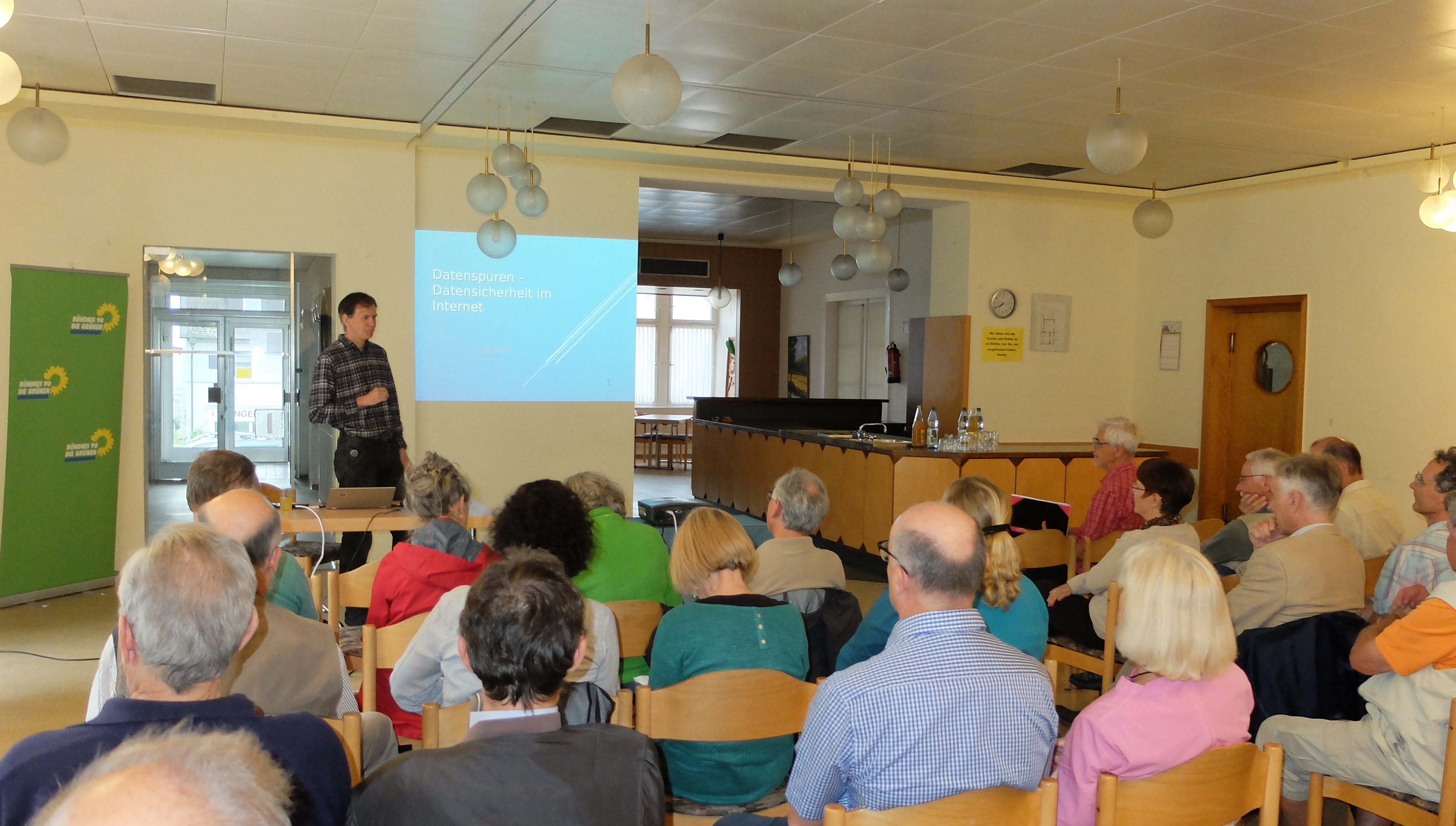 Einem hochaktuellen Thema hatte sich Torsten Leveringhaus, Sprecher des Kreisverbandes Darmstadt-Dieburg und Direktkandidat im Wahlkreis 51 von BÜNDNIS 90/DIE GRÜNEN für die Landtagswahl in Hessen angenommen: Wenige Tage vor der Verabschiedung der EU-Datenschutzgrundverordnung ging es am 23. Mai im Haus Hufnagel in Seeheim-Jugenheim um „Datenspuren und Datensicherheit im Internet“.