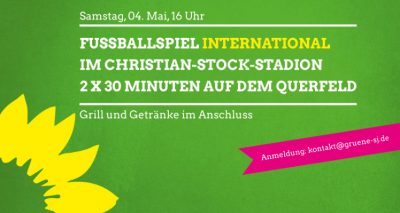 Die GRÜNEN Seeheim-Jugenheim veranstalten ein internationales Fußballspiel am Samstag, 04. Mai, um 16 Uhr im Christian-Stock-Stadion.