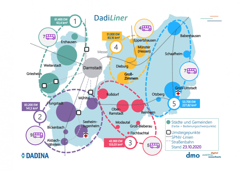 Die DaDiNa, die Nahverkehrsorganisation für den Landkreis Darmstadt-Dieburg und die Stadt Darmstadt, plante seit einiger Zeit den Einsatz von HeinerLinern in Darmstadt und DadiLinern im Landkreis. Dies sind Kleinbusse, die auf Abruf per App oder Telefon flexibel fahren, um Nahverkehrslücken auszugleichen. Geplant waren für den Landkreis 32 Kleinbusse.
